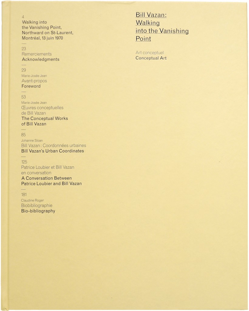 La pratique de Bill Vazan est généralement associée au land art et aux montages photographiques. Cependant, dès la fin des années 1960, cet artiste élabore un langage conceptuel singulier et réalise des œuvres emblématiques. Cette première monographie consacrée à son travail conceptuel espère rendre compte d’une œuvre profonde, inventive et rigoureuse, laquelle n’avait pas encore fait l’objet d’une telle attention. Elle comprend un entretien avec Patrice Loubier en plus des essais de Marie-Josée Jean et de Johanne Sloan et une biobibliographie compilée par Claudine Roger.