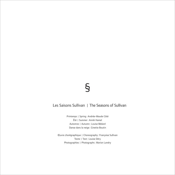 Les Saisons Sullivan fait revivre un projet de danse comportant quatre chorégraphies de Françoise Sullivan sur le cycle des saisons, devant être dansées et filmées dans des lieux distincts. Françoise Sullivan ne le réalisa qu’en partie, créant d’abord l’Été en 1947, aux Escoumins, puis la célèbre Danse dans la neige en février 1948, sur le mont Saint-Hilaire. Soixante ans plus tard, l’ensemble de l’œuvre a enfin vu le jour grâce à la création complète des chorégraphies et leur interprétation par quatre danseuses, à un volet vidéographique coréalisé par Mario Côté et Françoise Sullivan, et aux photographies de Marion Landry qui, pendant tout le tournage, a capté les danseuses en action. Louise Déry signe un essai sur l’œuvre mythique de cette grande pionnière de la danse contemporaine au Canada.