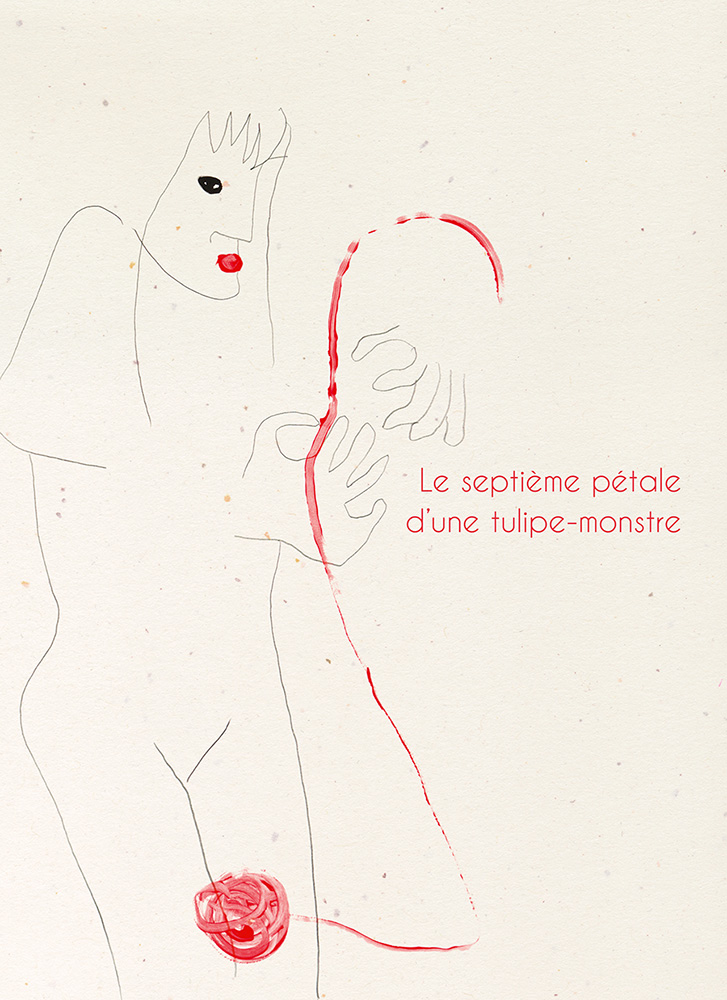 Le septième pétale d’une tulipe-monstre prend la forme d’un recueil d’exposition, un livre à la forme hybride, tissant ensemble plusieurs fils poétiques. Trois chapitres ont en trame de fond un texte à quatre mains de la commissaire et autrice Elise Anne LaPlante et de l’autrice et artiste Mimi Haddam, où entrelace la documentation illustrée des performances de Caroline Boileau et Helena Martin Franco, tenues lors de chacun des cycles du projet et réalisées par Chase Martin (à Saint-Boniface), Natalie Morin (à Moncton) et Julie Delporte (à Montréal). S’ajoutent également des œuvres de Caroline Boileau, Daze Jefferies, Dominique Rey, Helena Martin Franco, Ikumagialiit et Winnie Truong. Enfin, des mots de Caroline Boileau, de Daze Jefferies, d’une femme éléphant (Helena Martin Franco) et de Laakkuluk Williamson Bathory (Ikumagialiit) viennent, en interlude, relier ces chapitres, leurs voix s’harmonisant avec les échos des imaginaires de chacune.