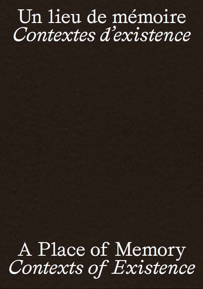 Ce livre d’art catalogue accompagne l’exposition Un lieu de mémoire : Contextes d’existence, commissariée par Irene Campolmi, produite et circulée par le Musée d’art de Joliette. L’exposition a été présentée au Musée d’art de Joliette du 11 février au 14 mai 2023, au Musée d’art contemporain de Baie-Saint-Paul du 17 juin au 5 novembre 2023 et à Plug In Institute of Contemporary Art du 10 mai au 13 juillet 2024. La peinture, le collage, la sculpture et la vidéo y sont représentés.